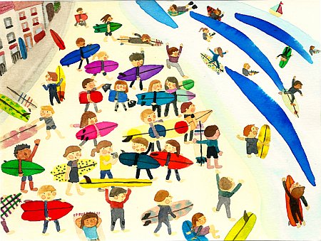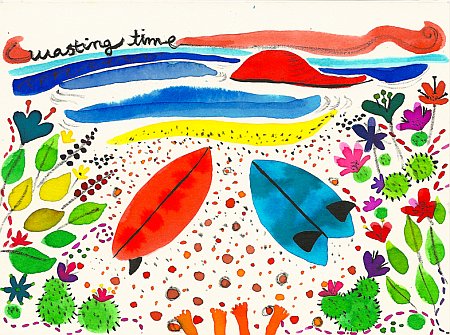 Para celebrar tan magnífico evento la Surfrider Foundation de Barcelona organiza una exposición de surf art (WTF! la expo está patrocinada por un concesionario de BMW) donde podréis ver trabajos de varios artistas, entre ellos los de Anna Araus, surfista y ex-Elisava, autora de las obras que acompañan esta entrada.